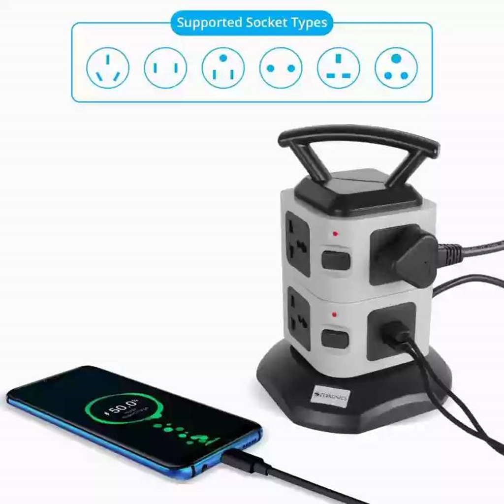 Zebronics Zeb- TS3320USB Tower Strip Extension Socket with 7 Universal Socket, 2 USB Ports and 2.8 m Long Cable