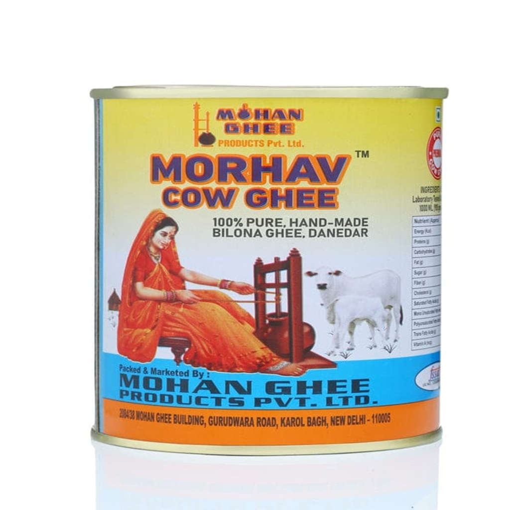 MORHAV® GHEE COW GHEE | 100% Bilona Method | Cow Milk | Curd-Churned | NOT Cream Cultured Ghee | in Food-Grade Tin | Pure, Natural, Healthy | Lactose-Free | No Preservatives | No Chemicals | Pesticide Residue not detected | Keto-Friendly | Lab Tested